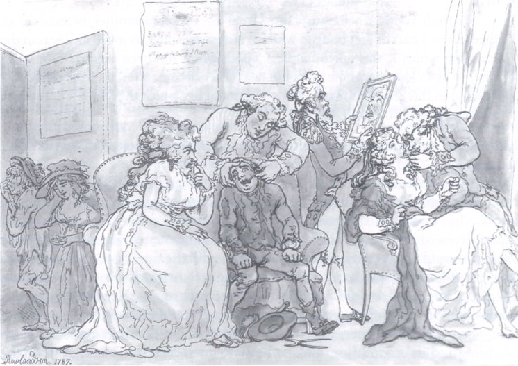 El trasplante de dientes, de Thomas Rowlandson. Los pobres dan sus dientes a los ricos a cambio de dinero. Para Kant una persona no puede vender un diente, un riñón, una pierna, ni ser madre de alquiler… (Sandel propuso este cuadro en Justicia, p. 150)